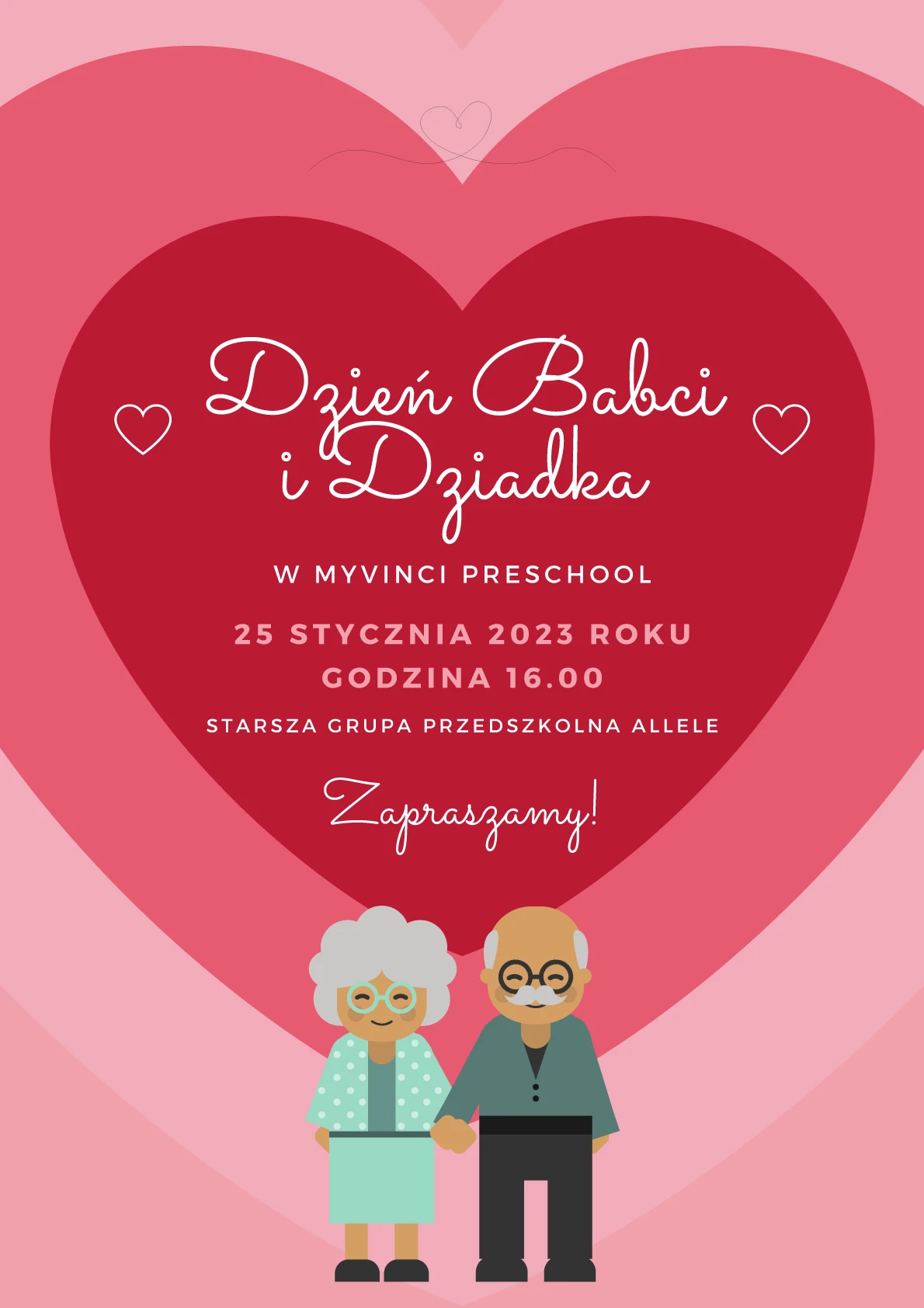 Serdecznie zapraszamy na uroczyste obchody Dnia Babci i Dziadka w przedszkolu na Czerskiej.